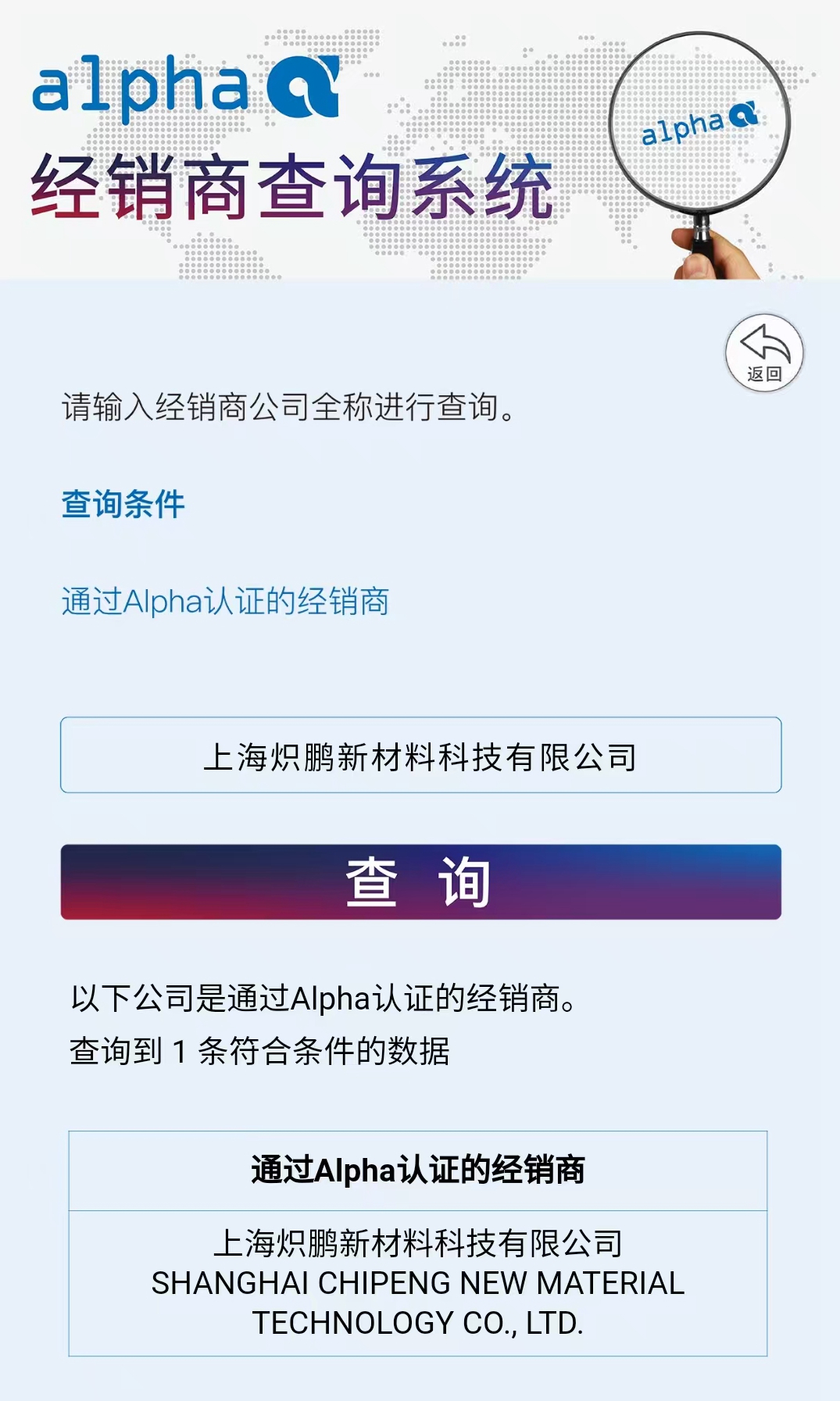查詢上海熾鵬新材料科技有限公司Alpha代理資質